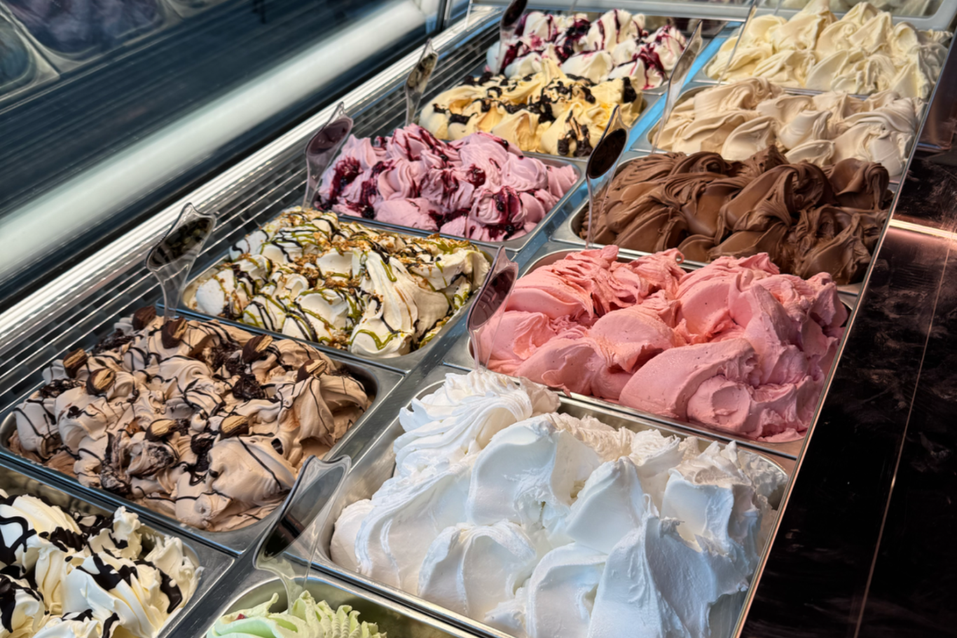 Genießen Sie unser cremiges, frisch zubereitetes Eis in einer Vielzahl von Geschmacksrichtungen.